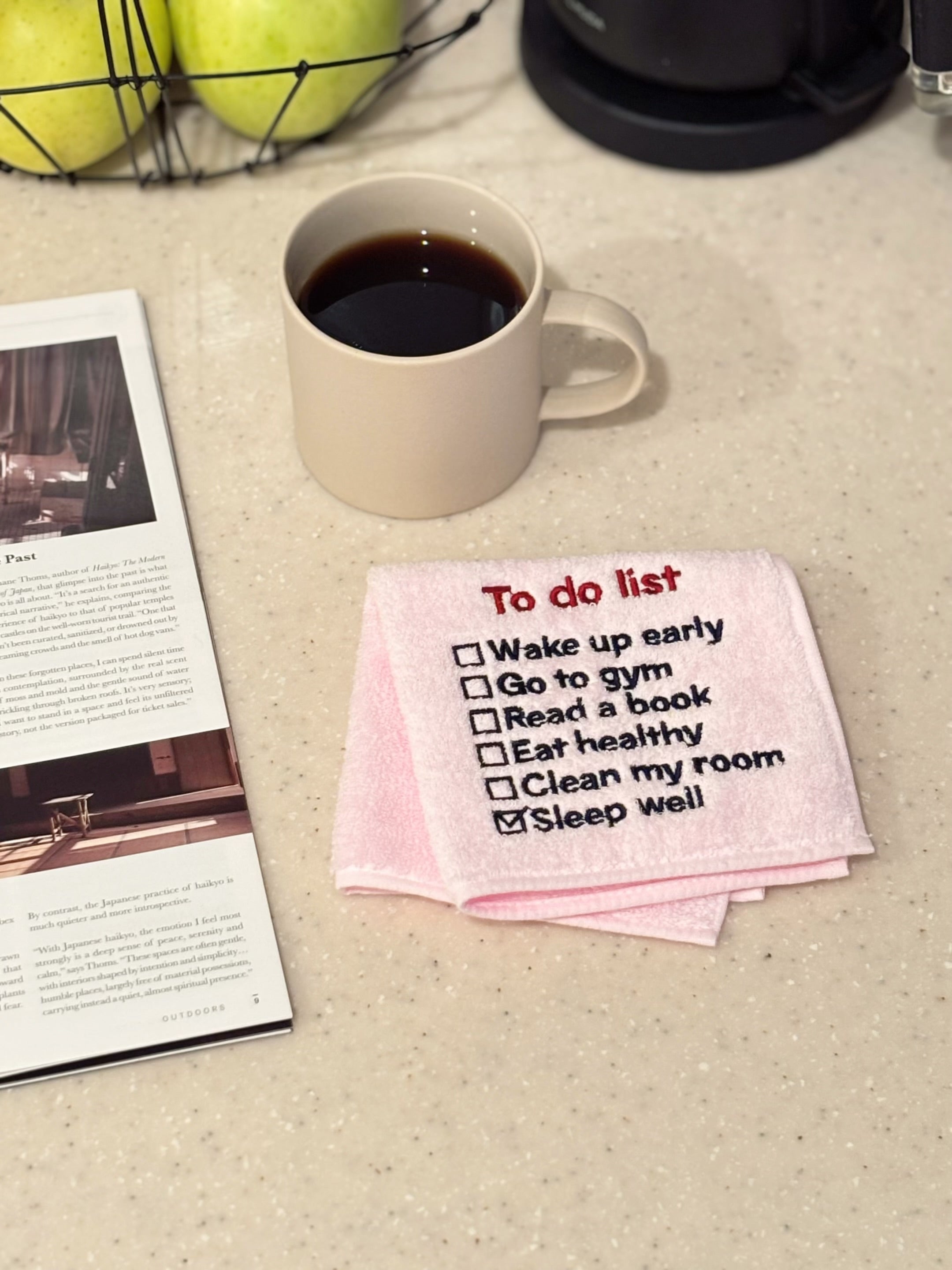 「日常の中の小さなモチベーションアップ」をコンセプトに、日々のルーティンや新しい習慣をリマインドできるよう毎日触れるハンドタオルへ「To do list」のデザインを込めています。