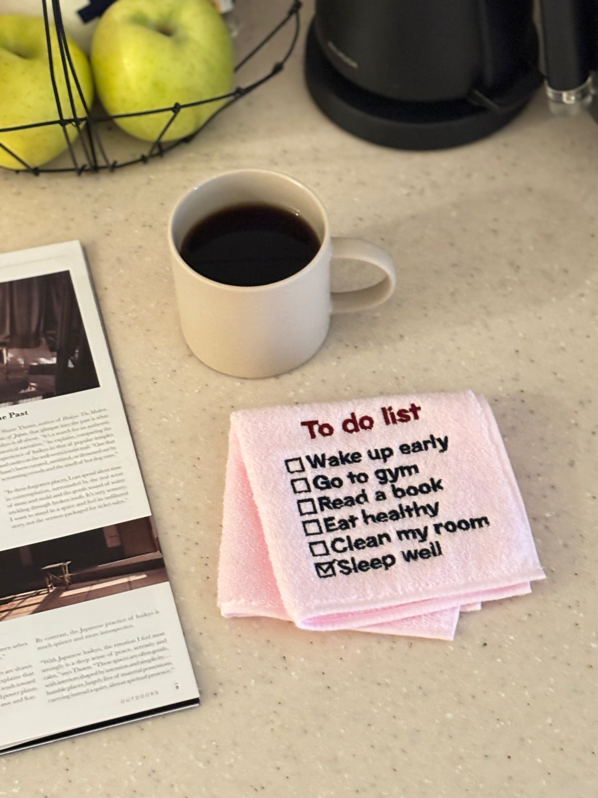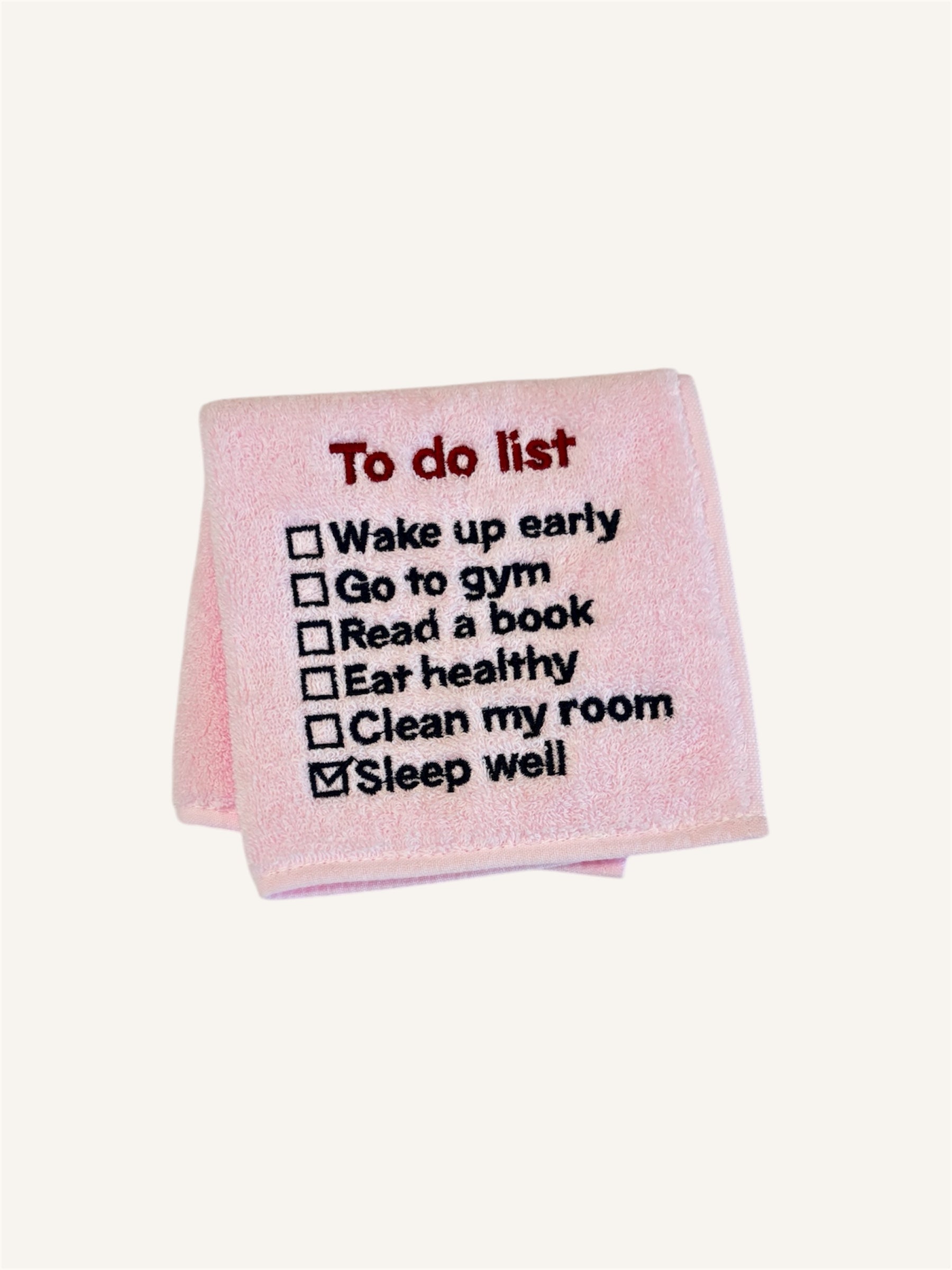 綿100%製のやわらかく丈夫で速乾性にもすぐれた今治のハンドタオルに「To do list」の文字を刺繍しました。